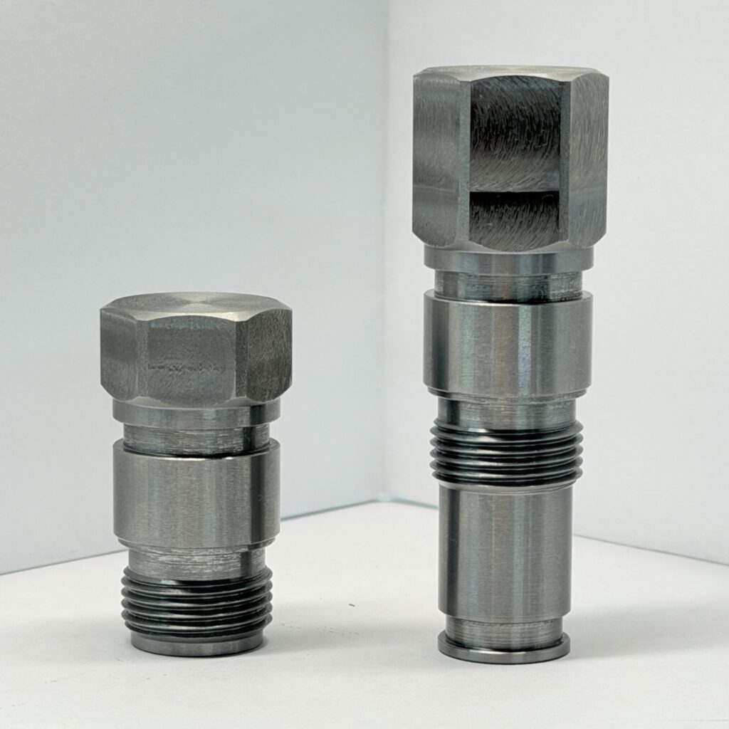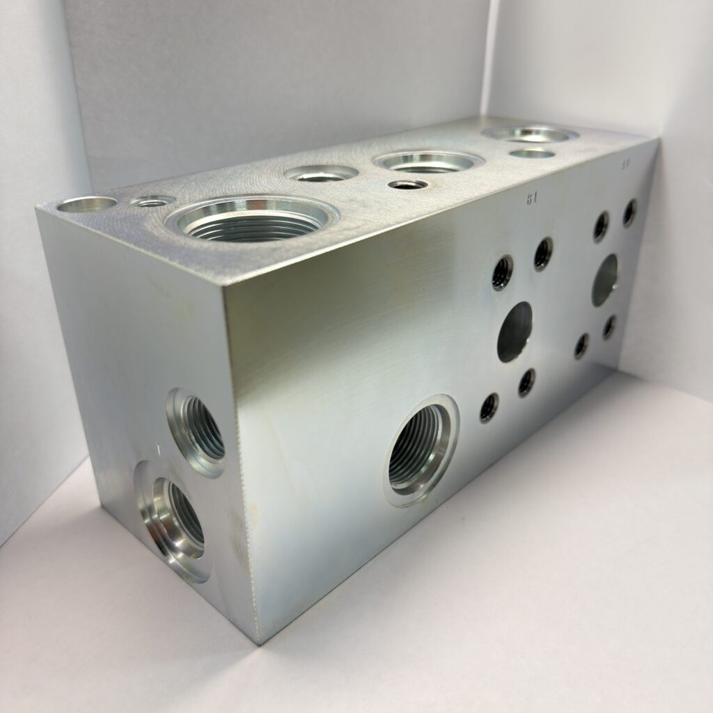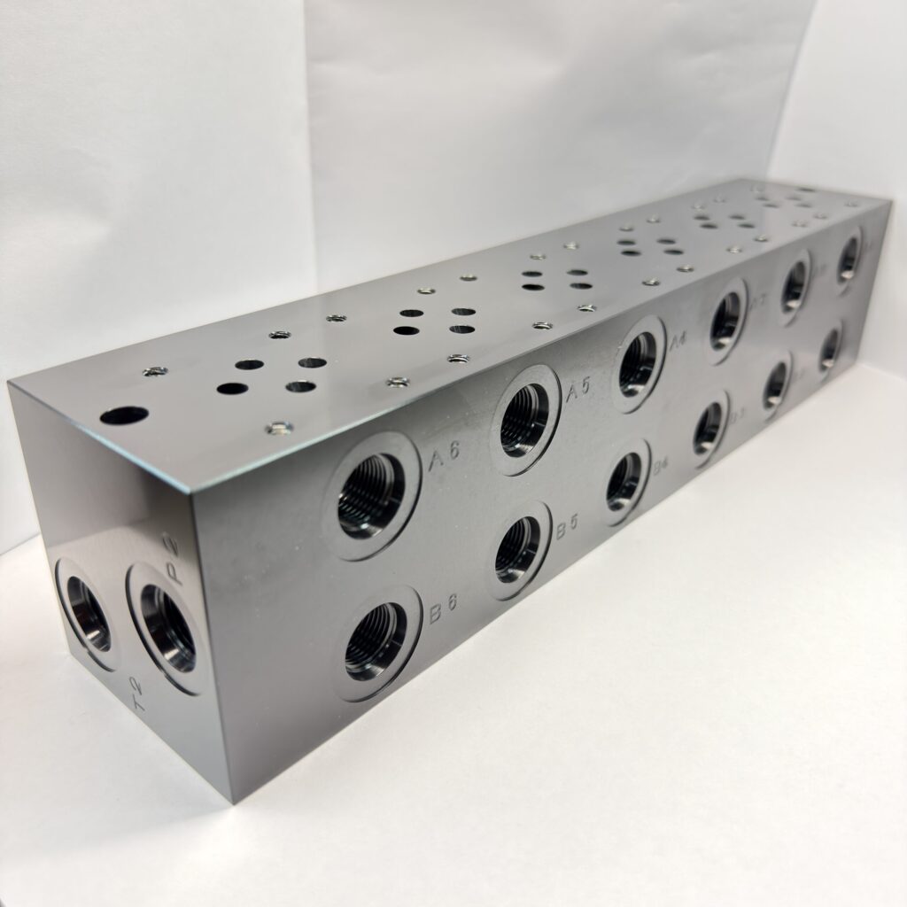 大千里精機製作所では、産業機械や建設機械などに不可欠な油圧バルブ部品を、設計から製造・組立・油圧検査まで一貫して手がけています。