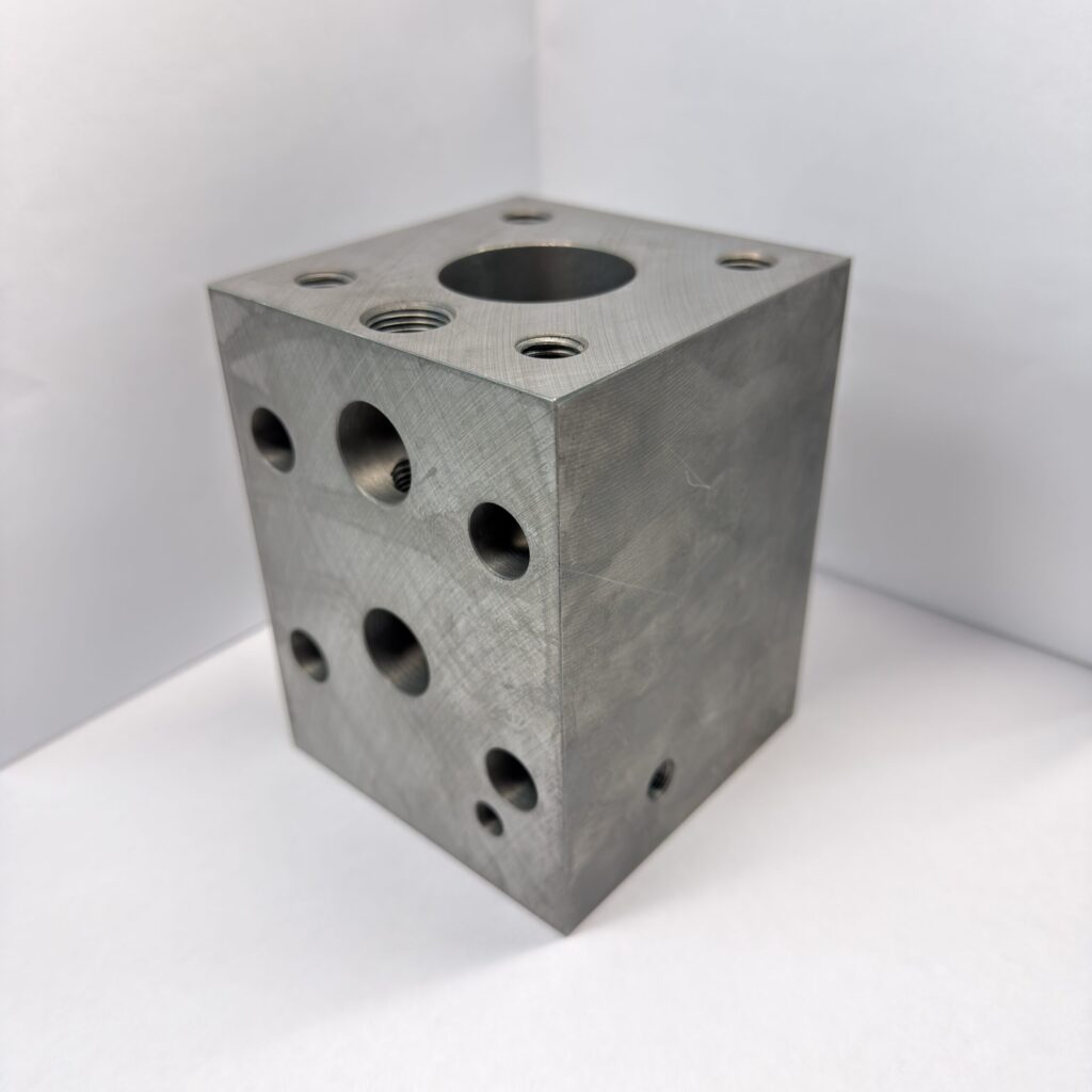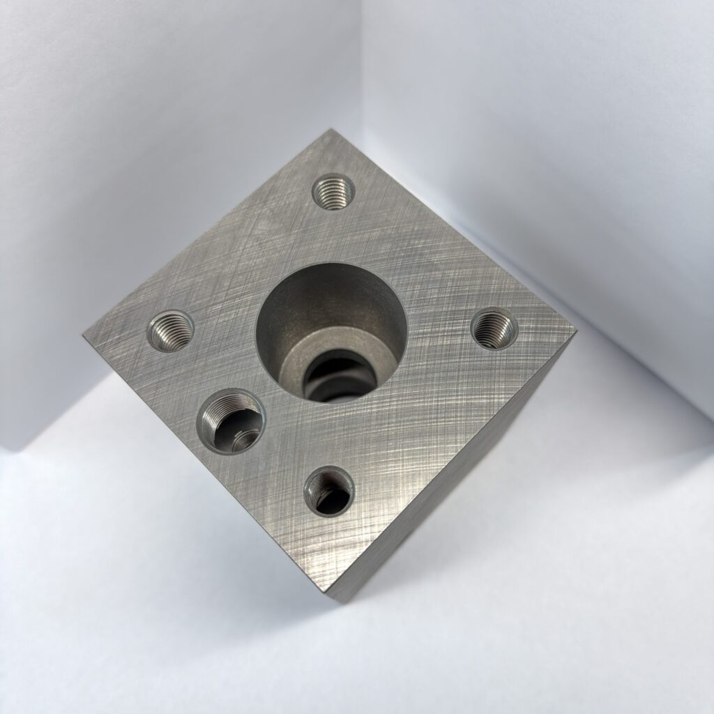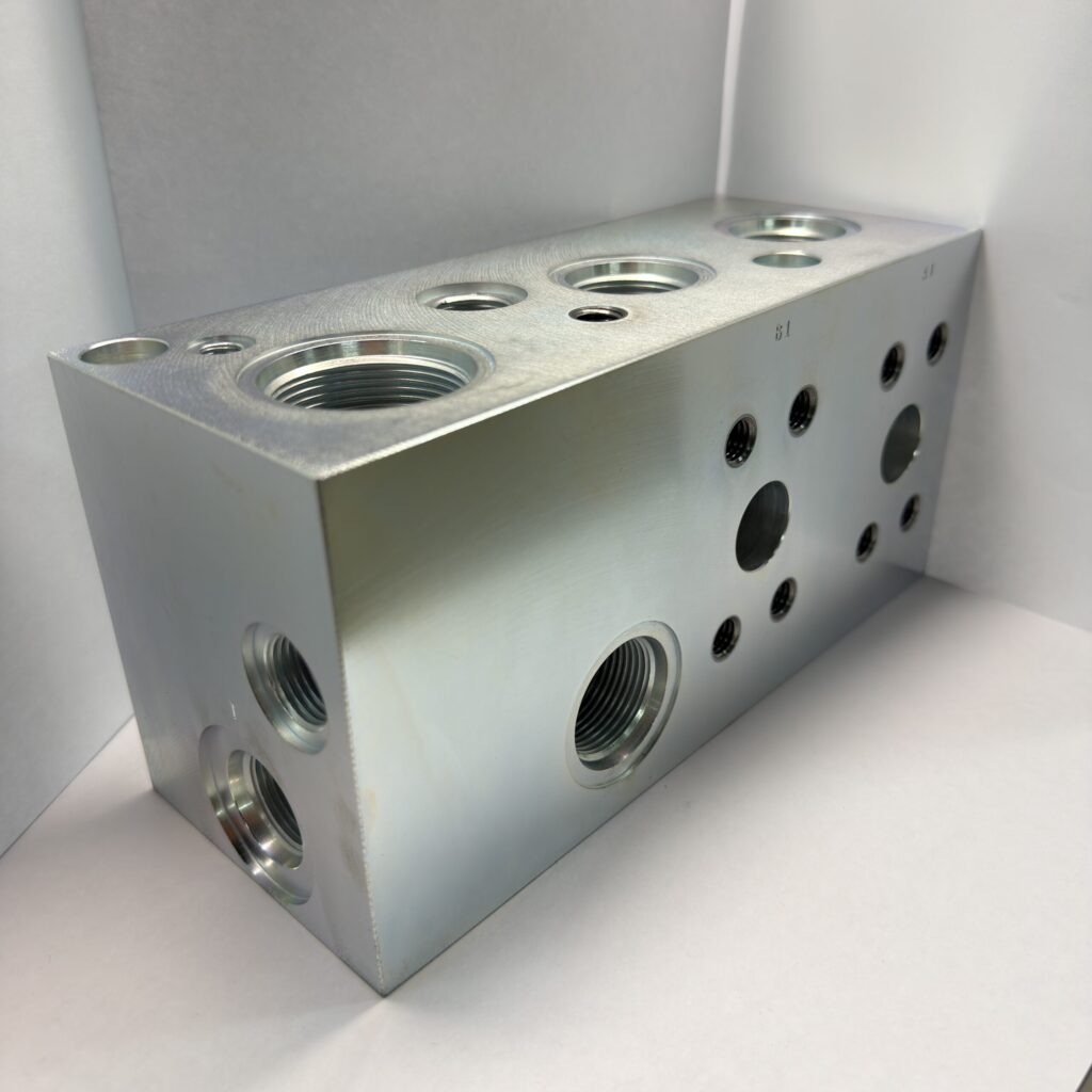 大千里精機製作所では、産業機械や建設機械などに不可欠な油圧バルブ部品を、設計から製造・組立・油圧検査まで一貫して手がけています。